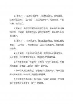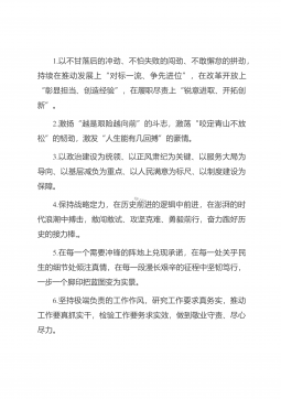 1.以不甘落后的冲劲、不怕失败的闯劲、不敢懈怠的拼劲,持续在推动发展上“对标一流、争先进位”,在改革开放上“彰显担当、创造经验”,在履职尽责上“锐意进取、开拓创新”。2.激扬“越是艰险越向前”的斗志,激荡“咬定青山不放松”的韧劲,激发“人生能有几回搏”的豪情。3.以政治建设为统领、以正风肃纪为关键、以服务大局为导向、以基层减负为重点、以人民满意为标尺、以制度建设为保障。4.保持战略定力,在历史前进的逻辑中前进,在澎湃的时代浪潮中搏击,敢闯敢试、攻坚克难、勇毅前行,奋力跑好历史的接力棒,。5.在每一个需要冲锋的阵地上兑现承诺,在每一处关乎民生的细节处倾注真情,在每一段漫长艰辛的征程中坚韧笃行,一...