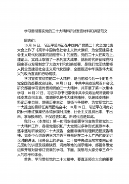 在理论学习中心组集体学习会上学习贯彻党的二十大精神心得体会发言汇编(13篇)目录1.在奋力谱写中国式现代化的xx篇章中彰显政协担当.32.深学细悟习近平新时代中国特色社会主义思想的世界观和方法论..................................................................53.在深入推进新时代党的建设新的伟大工程中彰显组织担当............................................................................84.奋进新征程夺取新胜利为实现农业农村现代化贡献xx力量.......