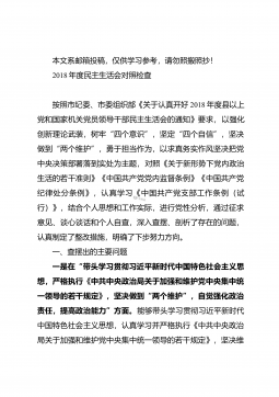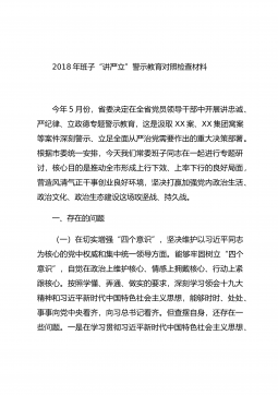 2018年班子“讲严立”警示教育对照检查材料今年5月份,省委决定在全省党员领导干部中开展讲忠诚、严纪律、立政德专题警示教育,这是汲取XX案、XX集团窝案等案件深刻警示、立足全面从严治党需要作出的重大决策部署。根据市委统一安排,今天我们常委班子同志在一起进行专题研讨,核心目的是推动全市形成上行下效、上率下行的良好局面,营造风清气正干事创业良好环境,坚决打赢加强党内政治生活、政治文化、政治生态建设这场攻坚战、持久战。一、存在的问题(一)在切实增强“四个意识”,坚决维护以习近平同志为核心的党中权威和集中统一领导方面。能够牢固树立“四个意识”,自觉在政治上维护核心、情感上拥戴核心、行动上紧跟核心。按照...