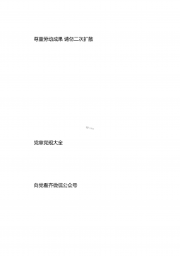 尊重劳动成果请勿二次扩散党章党规大全向党看齐微信公众号目录第一部分:党章....................................................................51.中国共产党章程.........................................................5第二部分:准则..................................................................222.关于新形势下党内政治生活的若干准则...............223.中国共产党廉洁自律准则.......
