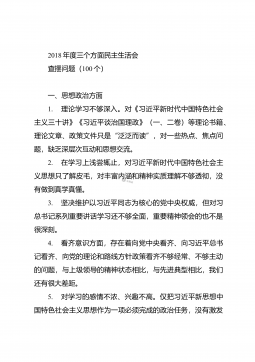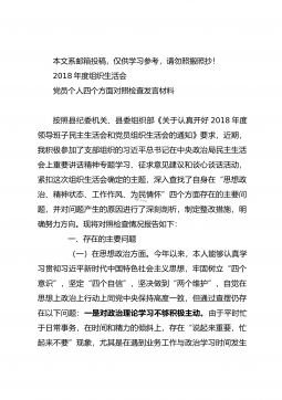 1901016-2018年度组织生活会党员个人四个方面对照检查发言材料