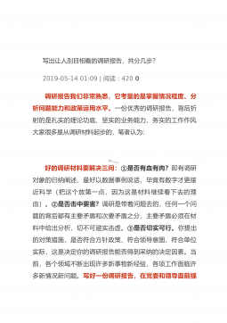 他是如何凭借公文“七要”,从科员写到“要职”?“文章之作,其道多端;运用之妙,在乎一心。”拿得起笔杆子越来越成为党政机关公职人员的核心能力,材料写作的过程并不是单一的文字堆砌,而是逻辑思维能力、综合统筹能力、宏观分析能力、驾驭全局能力、见微知著能力的综合全面反映。这就好比盖房子,要明晰房子的用途,要有好的框架设计,要有足够多的建筑材料,最后还要给房子粉刷漂亮取个好名。笔者进入体制内十余年,从普通的科员一路提拔到重要岗位,每一次仕途的进步,都或多或少得益于自己的能公文写作能力,而每到一个新的平台又会以新的格局和视野去提升本领,最终进入了职业发展的正向循环“快车道”“操千曲而后晓声,观千剑而后识器...