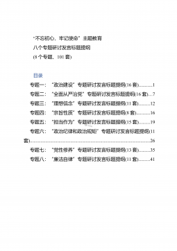 2019100509不忘初心牢记使命主题教育八个专题研讨发言标题提纲8个专题101套