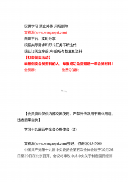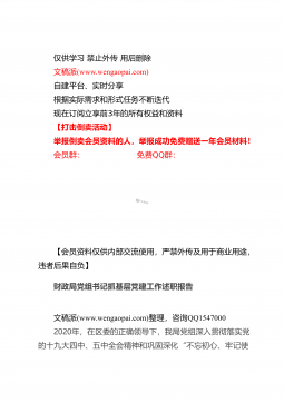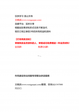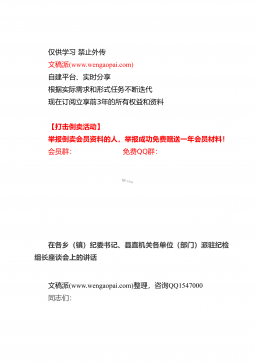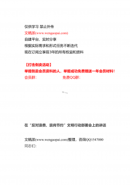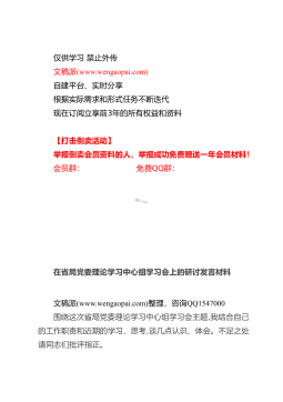 仅供学习禁止外传文稿派(www.wengaopai.com)自建平台、实时分享根据实际需求和形式任务不断迭代现在订阅立享前3年的所有权益和资料【打击倒卖活动】举报倒卖会员资料的人,举报成功免费赠送一年会员材料!会员群:免费QQ群:在省局党委理论学习中心组学习会上的研讨发言材料文稿派(www.wengaopai.com)整理,咨询QQ1547000围绕这次省局党委理论学习中心组学习会主题,我结合自己的工作职责和近期的学习、思考,谈几点认识、体会。不足之处请同志们批评指正。一、深刻认识整治形式主义官僚主义厉行勤俭节约的重大政治意义现实意义坚持不懈整治形式主义官僚主义、厉行勤俭节约,是我们党一以贯之...