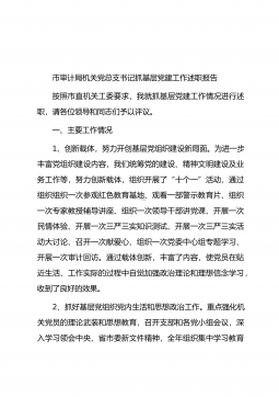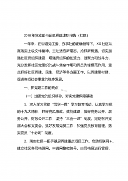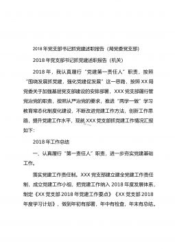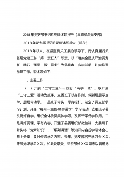 2018年党支部书记抓党建述职报告(局党委党支部)2018年党支部书记抓党建述职报告(机关)2018年,我认真履行“党建第一责任人”职责,按照“围绕发展抓党建,强化党建促发展”这一思路,按照XX局党委关于加强基层党支部建设的安排部署,XXX党支部履行管党治党的职责,按照从严治党的要求,推进“两学一做”学习教育常态化制度化建设,不断改进党建工作方法,创新工作思路,提升党建工作水平,现就XXX党支部抓党建工作情况汇报如下:2018年工作总结一、认真履行“第一责任人”职责,进一步夯实党建基础工作。落实党建工作责任制。XXX党支部建立建全党建工作责任制,成立党建工作小组,把党建工作纳入2018年度发展...