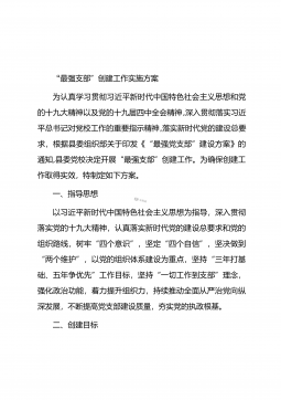 “最强支部”创建工作实施方案为认真学习贯彻习近平新时代中国特色社会主义思想和党的十九大精神以及党的十九届四中全会精神,深入贯彻落实习近平总书记对党校工作的重要指示精神,落实新时代党的建设总要求,根据县委组织部关于印发《“最强党支部”建设方案》的通知,县委党校决定开展“最强支部”创建工作。为确保创建工作取得实效,特制定如下方案。一、指导思想以习近平新时代中国特色社会主义思想为指导,深入贯彻落实党的十九大精神,认真落实新时代党的建设总要求和党的组织路线,树牢“四个意识”,坚定“四个自信”,坚决做到“两个维护”,以党的组织体系建设为重点,坚持“三年打基础、五年争优先”工作目标,坚持“一切工作到支部”...