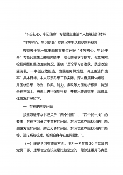 “不忘初心、牢记使命”专题民主生活会个人对照检查材料写作素材(87条)