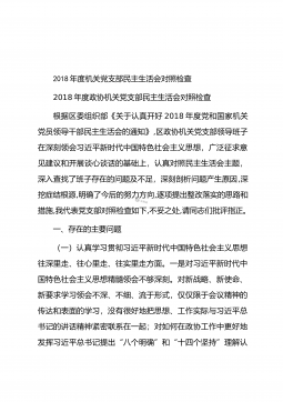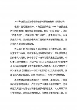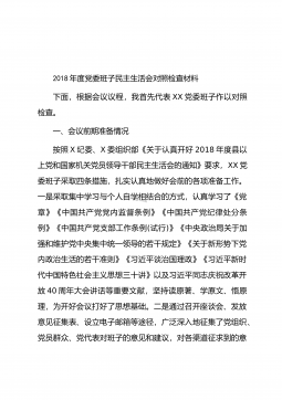 2018年度民主生活会班子对照检查材料(镇领导班子)民主生活会班子对照检查材料根据县委组织部《关于认真开好2018年度民主生活会的通知》要求,镇领导班子在深入学习习近平新时代中国特色社会主义思想,广泛征求意见建议和开展谈心谈话的基础上,认真对照民主生活会主题,重点围绕思想政治、精神状态、工作作风等方面深入查找了班子存在的问题及不足,深刻剖析问题产生原因,深挖症结根源,明确了今后的努力方向,逐项提出整改落实的思路和措施,现对照检查如下,不妥之处,请同志们批评指正。一、整改落实情况2017年民主生活会及2018年中央和省委巡视整改专题民主生活会发现的X个问题已全部得到整改,镇党委切实把抓好问题整改...