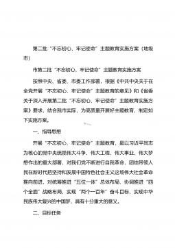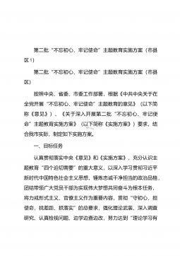 第二批“不忘初心、牢记使命”主题教育实施方案(市县区1)