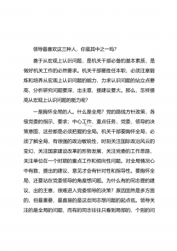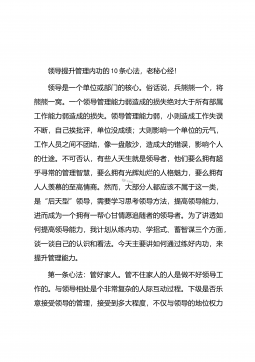 领导提高“人气”三大方法作者:随风领导,无论级别高低或权力大小,其实质都应是权威的象征,具有受人钦敬和令行禁止的影响力,也即具有旺盛的“人气”。但现实来看,些领导“人气”不高,同级不亲、下级不敬,虽有领导的身份,却发挥不了领导的作用,毋庸讳言,领导当成这样,不仅于工作有害,而且对自己也是一种折磨。那么,领导干部如何提高在单位里的“人气”呢?一、工作尽责,少出乱子在其位则谋其政,领导者地位的高低首要的取决于其对职责的履行情况。能把自己的分内事做好,这是一个领导干部在单位立足的根本。解决尽职问题,需要在三个方面下功夫。首先,注意充实和提高新的工作技能,防止工作上力难胜任。领导干部要增强责任感和危机...