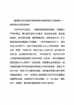 强核聚力 抓点拓面 不断探索城市基层党建工作新路径——组织部长交流发言材料