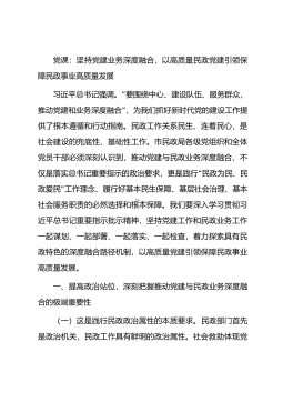 残联在市党建工作座谈会上的发言材料尊敬的各位领导、同志们:大家好!非常荣幸能参加今天这个座谈会。刚才听了各位领导和同志们的发言,很受启发,也很受教育。今天,我主要想结合市残联的实际工作,向各位领导汇报一下我们在党建工作方面的一些做法和体会,同时也想借这个机会,就如何更好地发挥机关党工委的指导作用,提出几点不成熟的想法,不当之处,敬请批评指正。一、立足残联实际,努力探索党建引领残疾人事业发展的有效路径残联是党和政府联系广大残疾人朋友的桥梁和纽带,说实在话,我们这个群体比较特殊,工作也有一定的特殊性。这几年,我们一直在思考一个问题:怎样才能把党建工作做实做细,真正转化为推动残疾人事发展的强大动力?...
