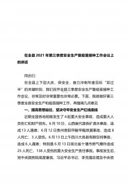 在全县2021年第三季度安全生产暨疫苗接种工作会议上的讲话