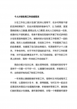 个人计划生育工作总结范文计生工作在上级计生部门的关心指导下,在乡村两级干部的支持和帮助下,在全乡居民的积极参与下,以为统领,紧紧围绕控制人口数量,提高出生人口素质,优化人口结构这一任务,依靠村社干部和群众,有条不紊地在阳坡村开展了形式多样的计划生育宣传服务工作。使我村的计划生育工作取得了一定的成绩。我本人也感到很自豪,在实际工作中,不但提高了自己的自身素质,也提高了自己的业务能力,吃苦耐劳不计个人得失,不争名夺利,对于不利于团结的话不说,不利于工作的事不做,对于违法的事坚决不干。为了总结经验,使下年的工作再上新台阶,现将一年来的工作总结如下:我自分配计生办以来,服从领导安排,在阳坡村担任专干坚...