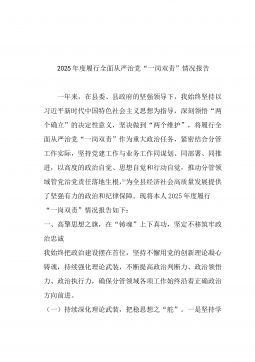 2025年度某税务局党委委员、副局长落实全面从严治党“一岗双责”情况报告一年来,我始终坚持以习近平新时代中国特色社会主义思想为指导,全面贯彻党的二十大和二十届历次全会精神,深刻领悟“两个确立”的决定性意义,坚决做到“两个维护”,严格落实全面从严治党“一岗双责”要求,坚持把党的政治建设摆在首位,把纪律和规矩挺在前面,把党风廉政建设与分管业务工作同谋划、同部署、同推进、同考核,切实做到业务工作延伸到哪里,管党治党责任就覆盖到哪里。现将本人2025年度落实全面从严治党“一岗双责”情况报告如下:一、突出政治统领,坚定理想信念,持续提升落实“一岗双责”的政治自觉和行动自觉一是坚持把强化理论武装作为首要任...