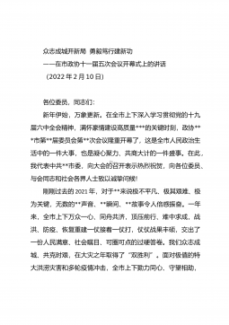 在中阳县第十七届人民代表大会第三次会议开幕会上的讲话孙燕飞2022年4月1日各位代表:现在,我代表县人民政府向大会报告工作,请予审议,并请县政协委员和其他列席人员提出意见。过去的一年,是我县发展史上具有重大意义的一年。在县委的坚强领导下,在县人大、县政协的监督支持下,县政府团结带领全县人民,坚持以习近平新时代中国特色社会主义思想为指导,全面贯彻党的十九大和十九届历次全会精神,深入学习贯彻习近平总书记视察山西重要讲话重要指示精神,认真落实中央、省、市各项决策部署,不断从党的百年奋斗历程中汲取奋进力量,坚定不移锚定四县目标、打造五彩中阳,统筹疫情防控和经济社会发展,立足当前抓落实、谋划长远抓项目、...
