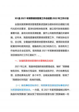 XX县 2021 年预算绩效管理工作总结暨2022 年工作计划
