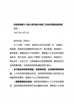 李伟在来凤县第十八届人民代表大会第二次会议闭幕会的讲话(20220402)