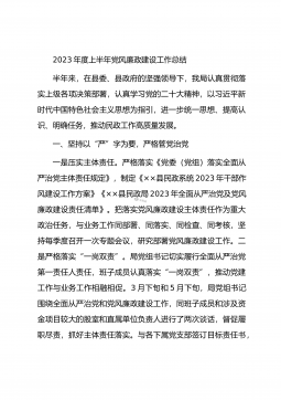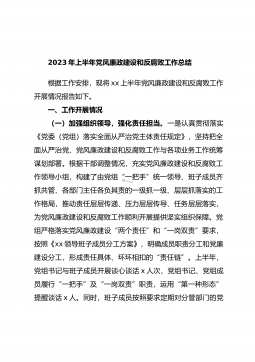2023年上半年党风廉政建设主体责任和反腐败斗争工作报告(总结汇报)