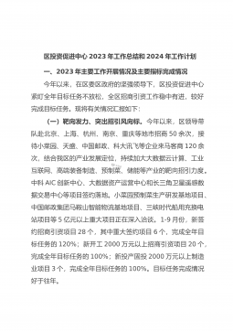 区投资促进中心2023年工作总结和2024年工作计划(1)
