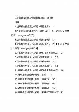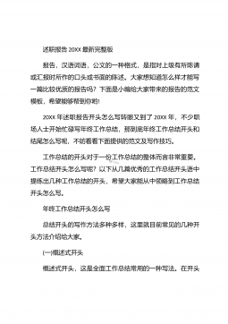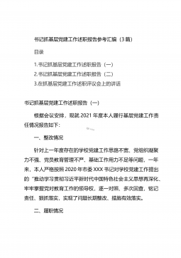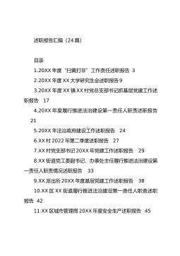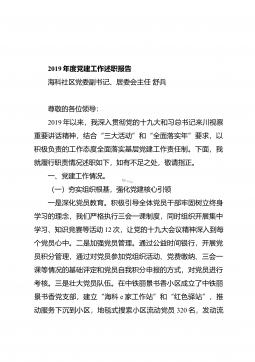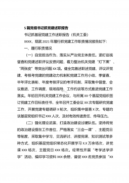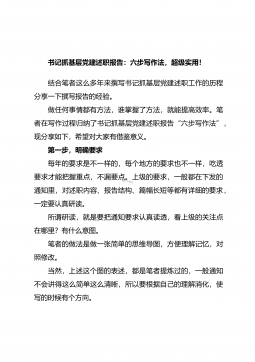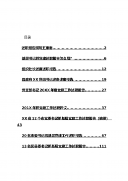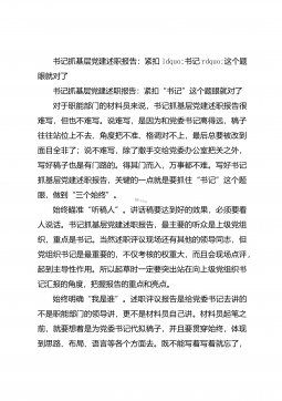 目录述职报告撰写五重奏.......................................2基层书记抓党建述职报告怎么写?.......................6组织处长述廉述职报告..................................12县政府XX党组书记述责述廉报告.....................19党支部书记20XX年度党建工作述职报告............27201X年抓党建工作述职评议..........................37XX省12个市党委书记抓基层党建工作述职报告(摘要)4320名市委书记抓基层党建工作述职报告........
