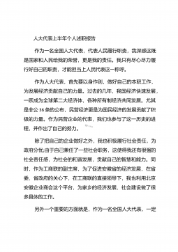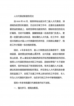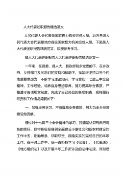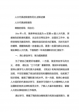 人大代表述职报告范文,述职述廉人大代表述职报告尊敬的领导、同志们: 20xx年x月,我荣幸地当选为xx区第xx届人大代表,深感肩负的职责和重担,无论在日常生活中,还是在工作中,始终觉得有无数双热烈、期盼和信任的目光盯着我,无时无刻不在鞭策、提醒我既是一名普通公民,更是一名要为群众讲实话、做实事的人大代表。下面我把一年来的履职状况汇报如下: 一、用心参加学习,努力提高素质 为了使自己能更好地履职,一方面,我坚持自学马列主义、-思想、-理论及“三个代表”重要思想,落实科学发展观,坚持认真学习人民代表大会制度、《宪法》和有关的其他法律法规,不仅仅增强了政治的坚定性和履职的自觉性,也拓宽了知识领域,提...