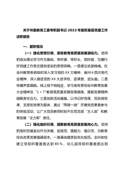 关于州委教育工委专职副书记2022年度抓基层党建工作述职报告