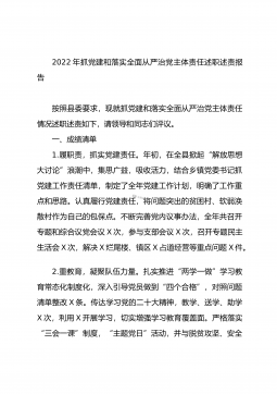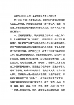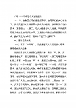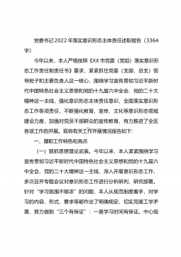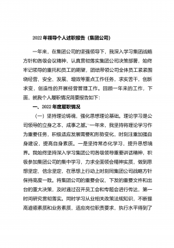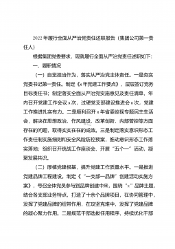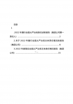 目录1.2022年履行全面从严治党责任述职报告(集团公司第一责任人)..................................................................22.关于2022年履行全面从严治党主体责任情况的报告(集团公司)............................................................63.2022年度落实全面从严治党主体责任情况报告(集团公司)...................................................................152022年履行...