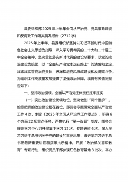 县委组织部2025年上半年全面从严治X、X风廉政建设和反腐败工作落实情况报告(2712字)