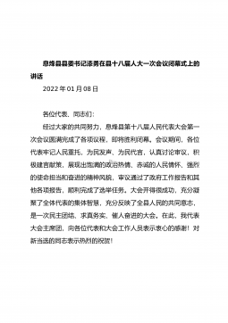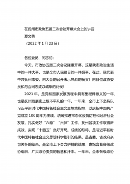 夏文勇在抚州市政协五届二次会议开幕大会上的讲话(20220123)