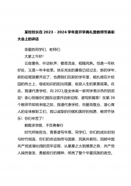 某校常务副校长在2023—2024学年度上学期第四周升旗仪式上的讲话