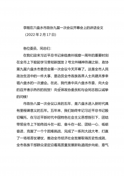 李刚在六盘水市政协九届一次会议开幕会上的讲话全文(20220217)