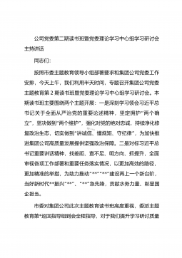 公司党委第二期读书班暨党委理论学习中心组学习研讨会主持讲话