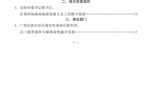 说明搜索好文”品鉴官”推荐文章及赏析文字等素材,可以先在本汇编中查找相关的关键词,看看所需素材的关键词在哪一期汇编之中,之后再到相应的汇编中查看具体文章,可以有效提高搜索效率。“菁华荟”系列第1期文章目录一、党委政府1.黑龙江省委书记许勤:给人民网网友回信………………………………………………………………12.浙江省委书记易炼红:在全力打造高素质干部队伍、高水平创新型人才和企业家队伍、高素养劳动者队伍大会上的讲话……………………………43.四川省委书记王晓晖:紧紧扭住中心工作和首要任务坚定不移推动四川高质量发展……………134.四川省委书记王晓晖省长黄强:以发展新质生产力为重要着力点推进高质量发...