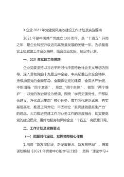 20210212X企业2021年党建党风廉政建设工作计划及实施要点 - 副本