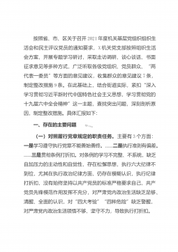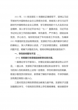 支部书记2021年度党史学习教育专题专题组织生活会个人对照检查剖析材料