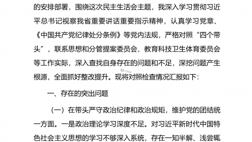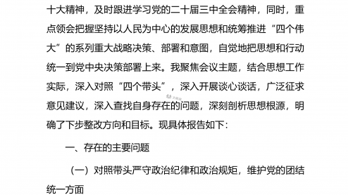 11【专题10】组织部长2020年民主生活会对照检查材料领导个人发言提纲(1)