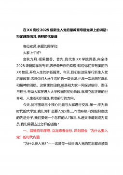 在XX高校2025级新生入党启蒙教育专题党课上的讲话:坚定理想信念,勇担时代使命