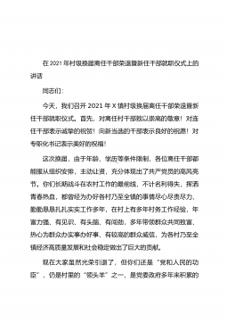 在2021年村级换届离任干部荣退暨新任干部就职仪式上的讲话
