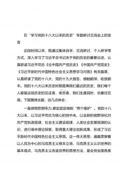 在“学习党的十八大以来的历史”专题研讨交流会上的发言