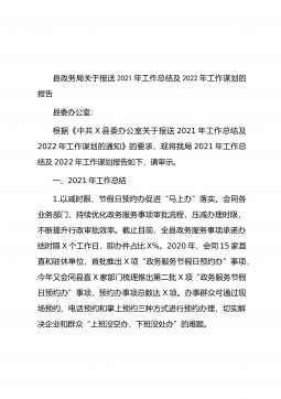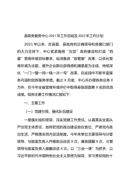 县政务服务中心党组关于2021年工作总结和2022年工作思路的报告