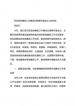 在区政府组成人员全体(扩大)会议暨政府系统廉政工作会议上的讲话