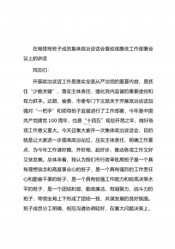在局领导班子成员集体政治谈话会暨巡视整改工作部署会议上的讲话