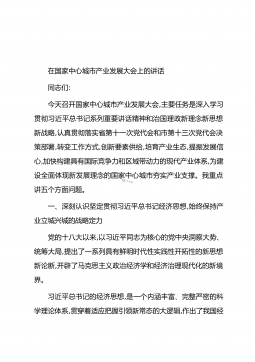 在国家中心城市产业发展大会上的讲话同志们:今天召开国家中心城市产业发展大会,主要任务是深入学习贯彻习近平总书记系列重要讲话精神和治国理政新理念新思想新战略,认真贯彻落实省第十一次党代会和市第十三次党代会决策部署,转变工作方式,创新要素供给,培育产业生态,提振发展信心,加快构建具有国际竞争力和区域带动力的现代产业体系,为建设全面体现新发展理念的国家中心城市夯实产业支撑。我重点讲五个方面问题。一、深刻认识坚定贯彻习近平总书记经济思想,始终保持产业立城兴城的战略定力党的十八大以来,以习近平同志为核心的党中央洞察大势、统筹大局,提出了一系列具有鲜明时代性实践性开拓性的新思想新论断,开辟了马克思主义政治...