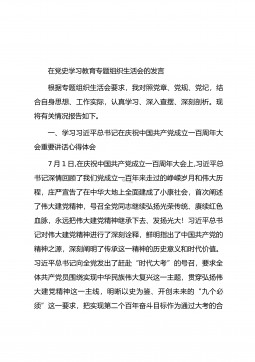 在党委理论学习中心组党史学习教育专题研讨会上的发言