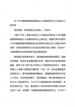 在X市巾帼家庭服务联盟成立大会暨信用平台上线仪式上的讲话