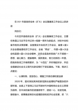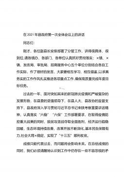 在2021年县政府第一次全体会议上的讲话