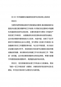 在2021年市直属机关基层党支部书记培训班上的讲话