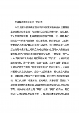 在调解矛盾纠纷会议上的讲话