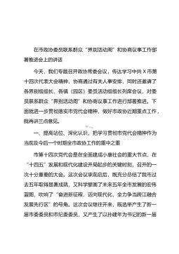 在市政协委员联系群众“界别活动周”和协商议事工作部署推进会上的讲话